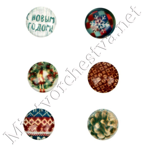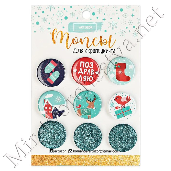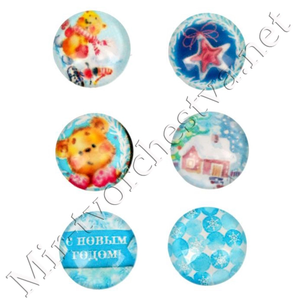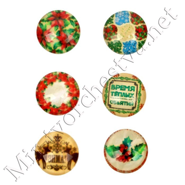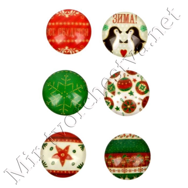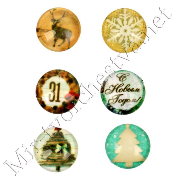 Декор стеклянный для скрапбукинга в наборе Cristmas diary, 6,5x6,5 см