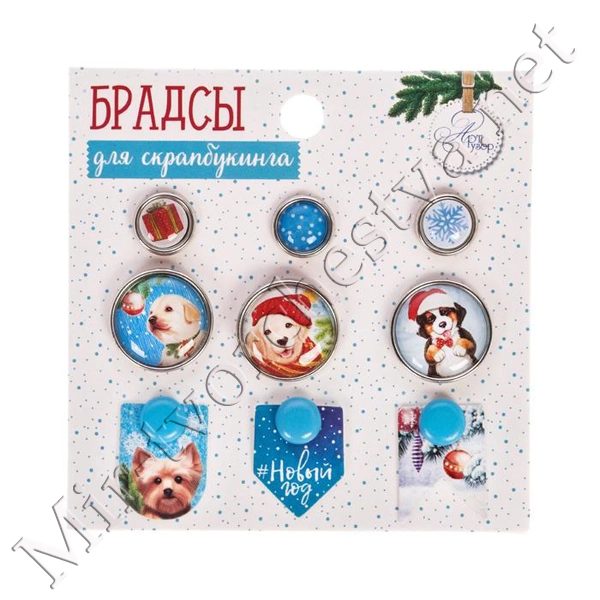 Брадсы для скрапбукинга с картонным декором в наборе «Веселые щеночки», 8x8 см