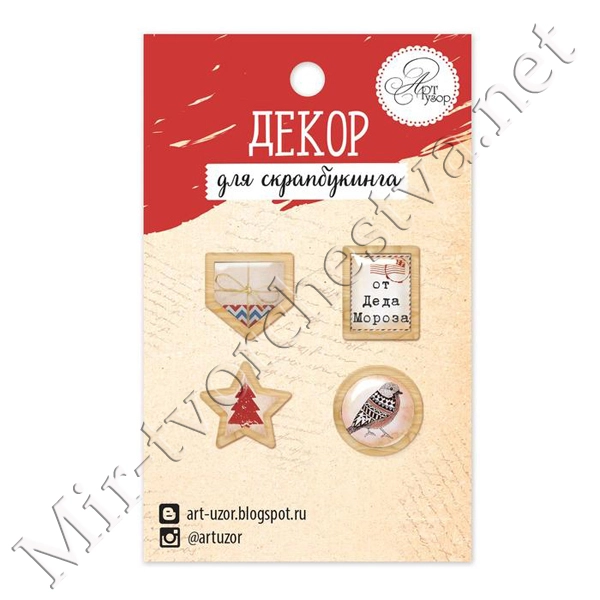 Декор стеклянный для скрапбукинга в наборе «Уютный новый год», 6,5x6,5 см