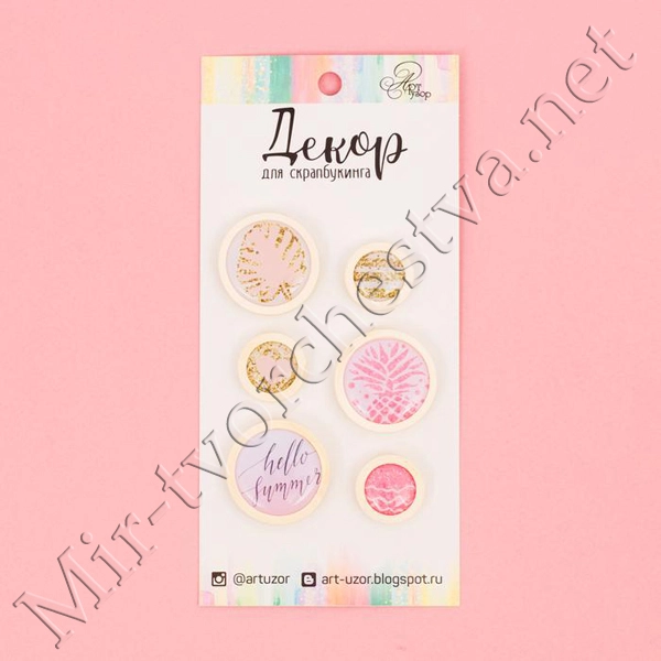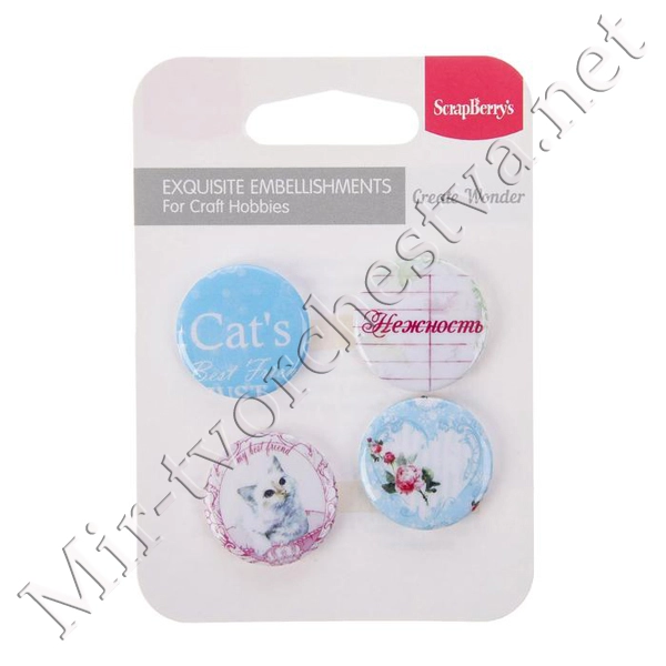 Набор фишек для скрапбукинга "Хлопковые сны" 4шт. d=2,5 см 3133894