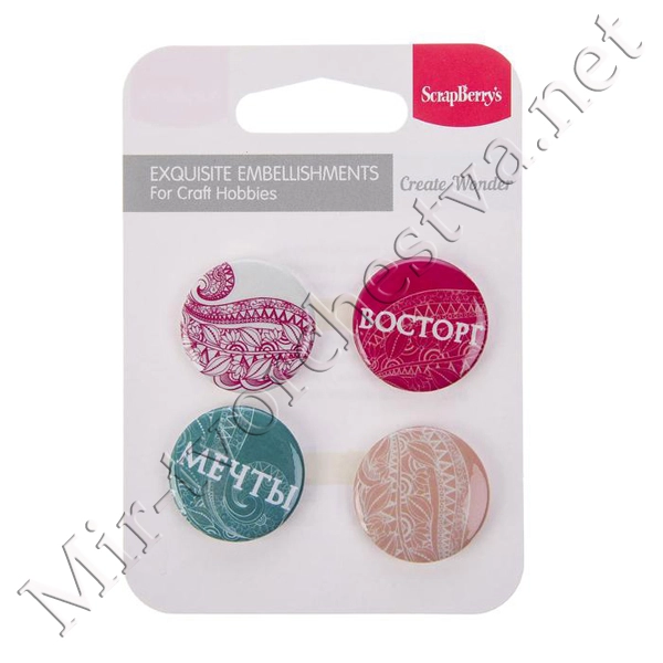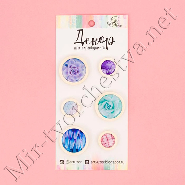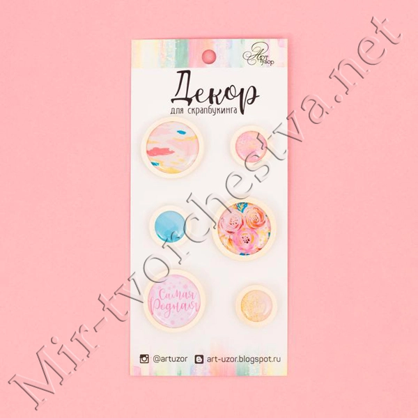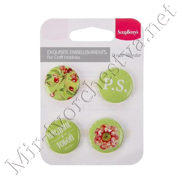 Набор фишек для скрапбукинга (4 шт) "Пионовый сад" d=2,5 см 3537975