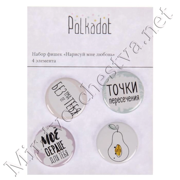 Набор фишек для скрапбукинга (4 шт) "Нарисуй мне любовь" d=2,5 см 2935245