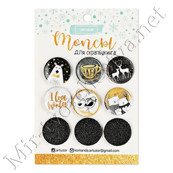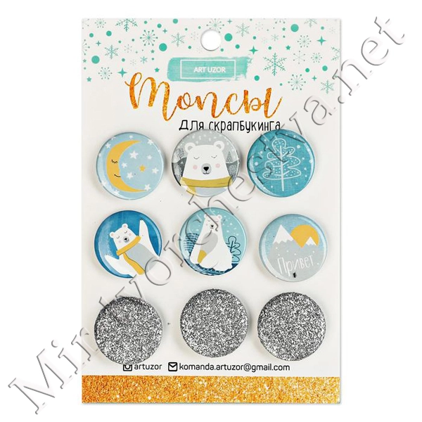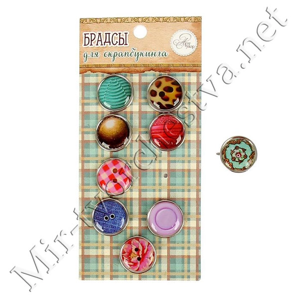 Брадсы для скрапбукинга "Пуговки" ( набор 9 шт. 1,9 см) МИКС 14х6,5 см 1226230