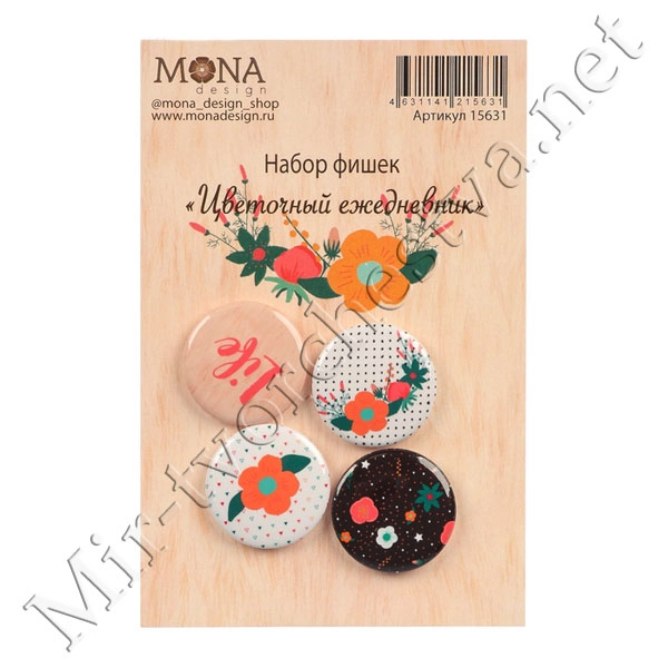 Набор фишек для скрапбукинга (4 шт) "Цветочный ежедневник" 3567839