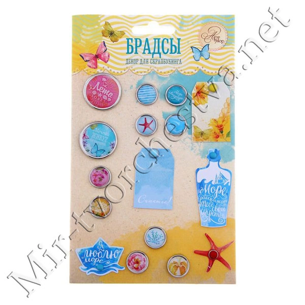 Набор брадсов для скрапбукинга с картонным декором "Мое море", 11x14 см 1211953
