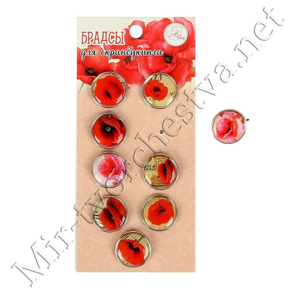 Брадсы для скрапбукинга "Красные цветы" (набор 9 шт. 1,9 см ) 14х6,5 см 1226227