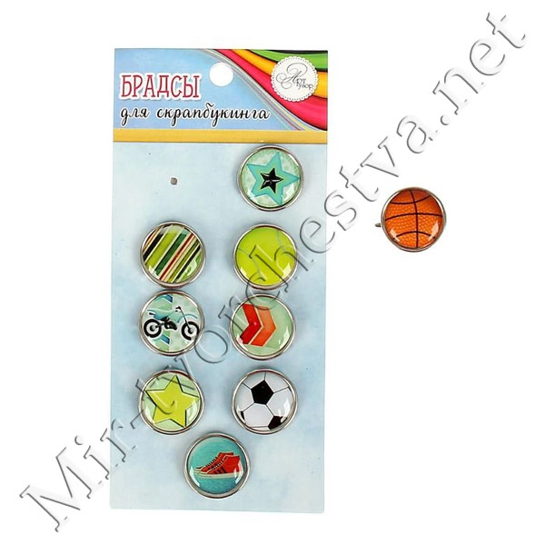 Брадсы для скрапбукинга "Спорт" (набор 9 шт. 1,9 см) МИКС 14х6,5 см 1226231