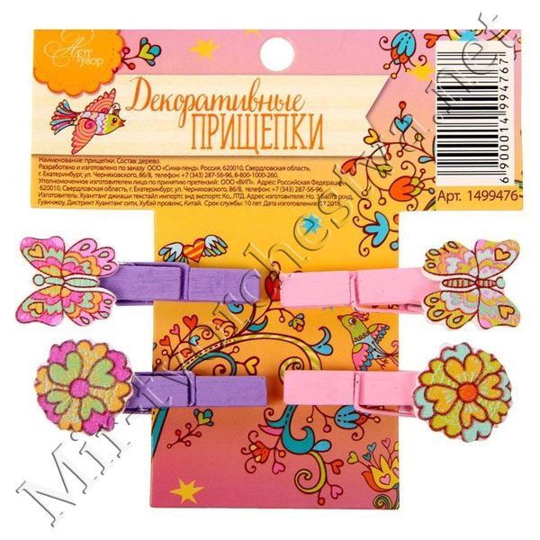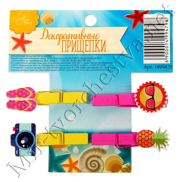 Набор декоративных прищепок "Краски лета" (4 шт), 10x10 см 1499479