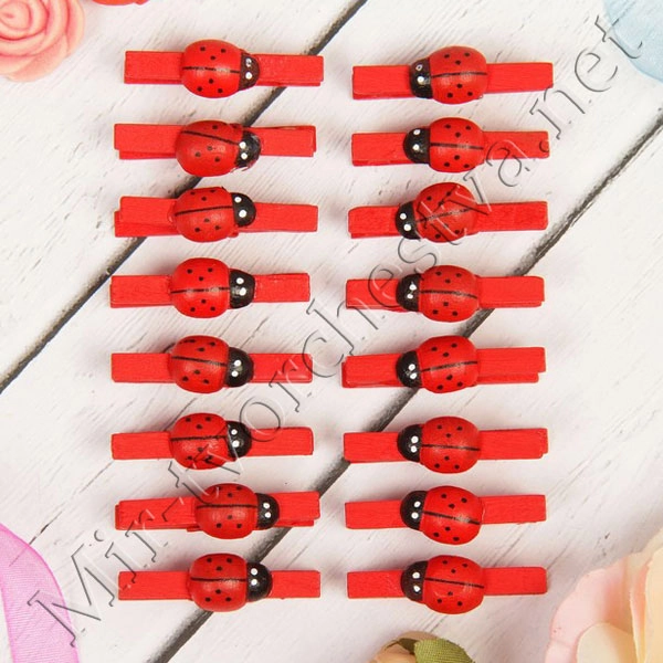 Прищепки "Божья коровка", на красной прищепке, набор 16шт, Арт Узор