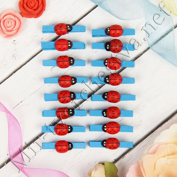 Прищепки "Божья коровка", на синей прищепке, набор 16шт, Арт Узор
