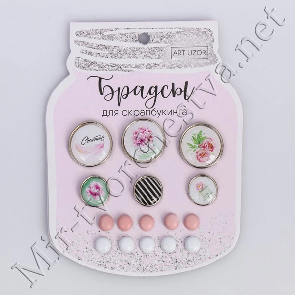 Набор брадсов для скрапбукинга с картонным декором «Нежная радость», 8x10 см 2711877