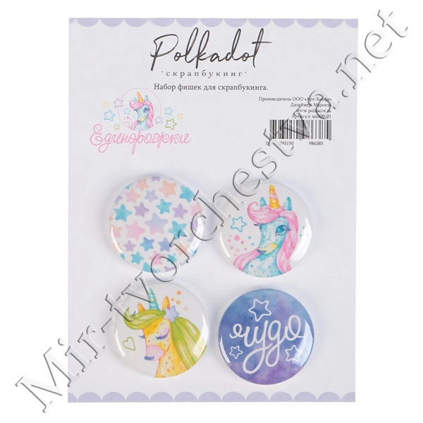 Набор фишек д/скрапбукинга (4 шт) "Единорожки" d=2,5 см 3419244