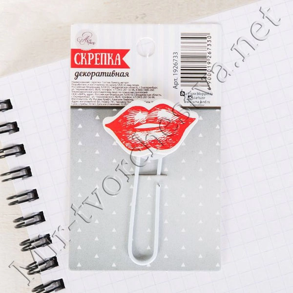 Декоративная скрепка для скрапбукинга "Легкий поцелуй", 5,5x9 см 1926733