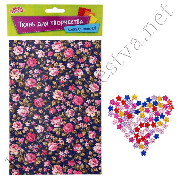 Ткань на клеевой основе для декорирования №170, размер листа 21*14,5см + стразы 5г