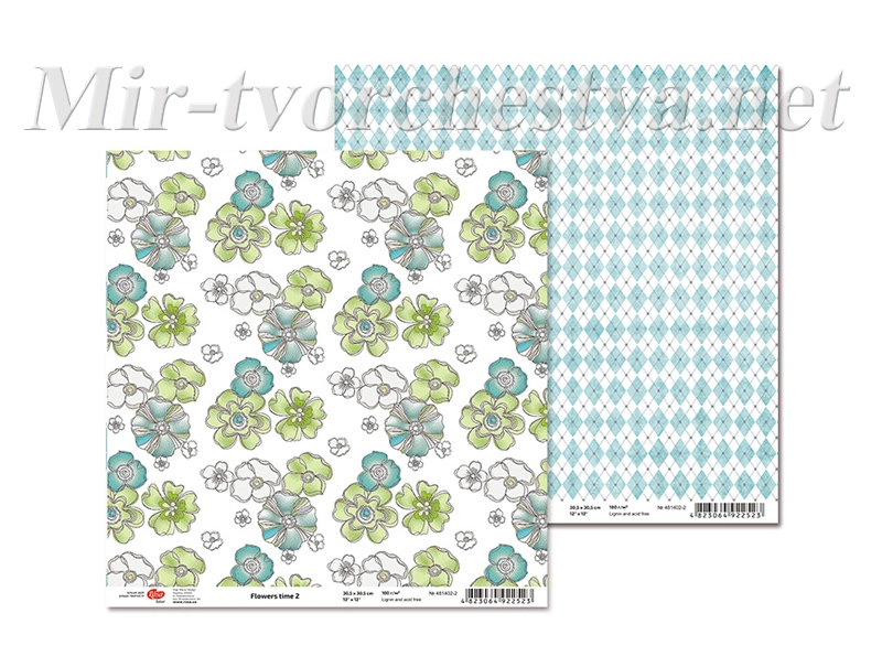 Бумага для скрапбукинга "Flowers time" 2, двосторонний, 30,5х30,5см, 180г/м2, TM ROSA Talent