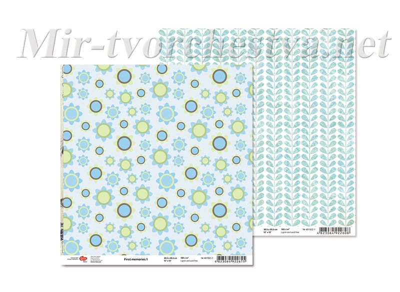 Бумага для скрапбукинга "First memories" 1, двосторонний, 30,5х30,5см, 180г/м2, TM ROSA Talent