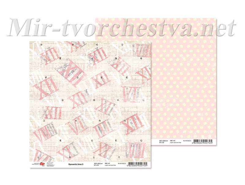 Бумага для скрапбукинга "Romantic time" 3, двосторонний, 30,5х30,5см, 180г/м2, TM ROSA Talent