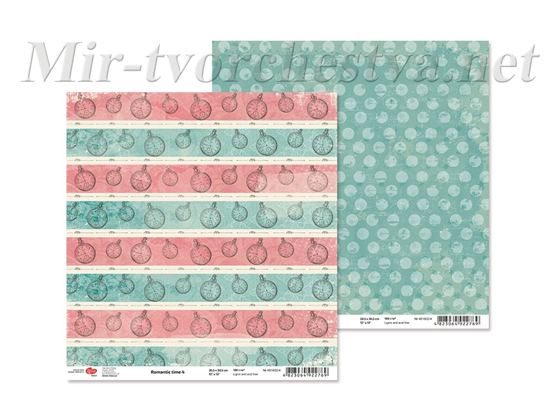 Бумага для скрапбукинга "Romantic time" 4, двосторонний, 30,5х30,5см, 180г/м2, TM ROSA Talent