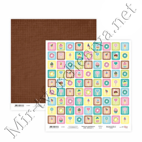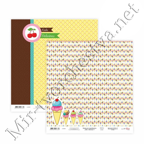 Бумага для скрапбукинга «Cake delicious» 1, двусторонняя, 30х30см, 200г/м2, ROSA TALENT