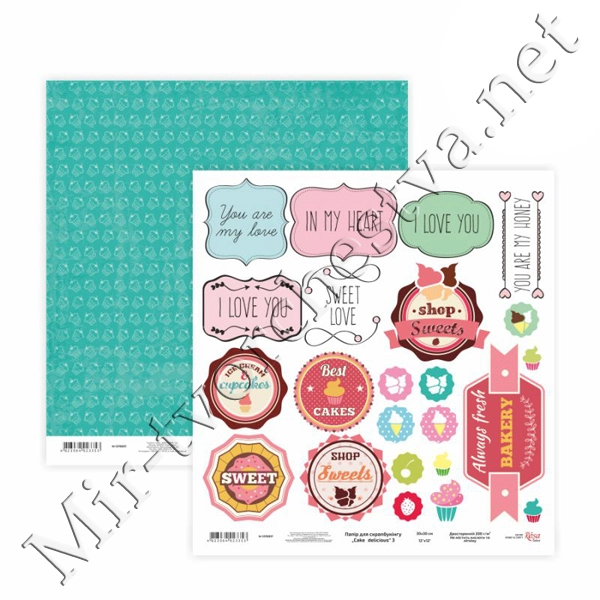 Бумага для скрапбукинга «Cake delicious» 3, двусторонняя, 30х30см, 200г/м2, ROSA TALENT