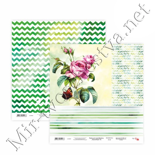 Бумага для скрапбукинга „Floral Poem“ 15, двусторонняя, 30,48х30,48см, 200г/м2, ROSA TALENT