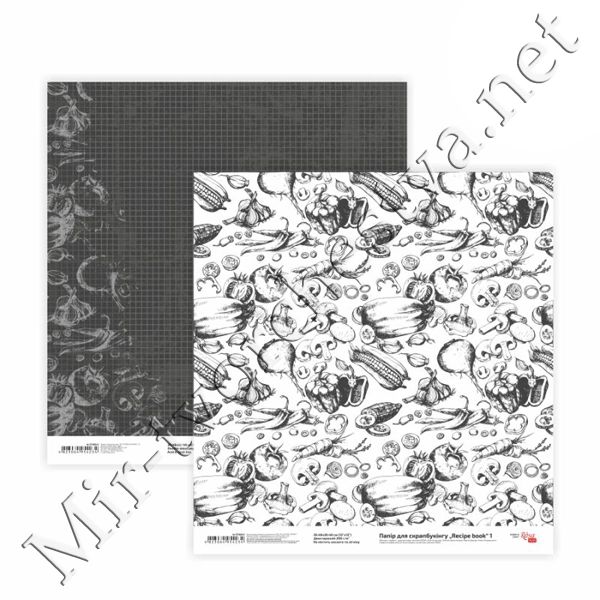 Бумага для скрапбукинга„Recipe book“ 1, двусторонняя, 30,48х30,48см, 200г/м2, ROSA TALENT