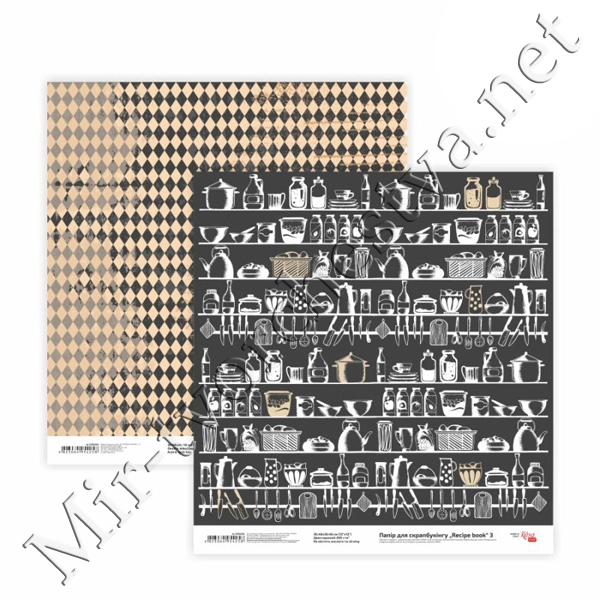 Бумага для скрапбукинга„Recipe book“ 3, двусторонняя, 30,48х30,48см, 200г/м2, ROSA TALENT