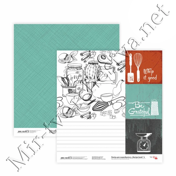 Бумага для скрапбукинга„Recipe book“ 4, двусторонняя, 30,48х30,48см, 200г/м2, ROSA TALENT
