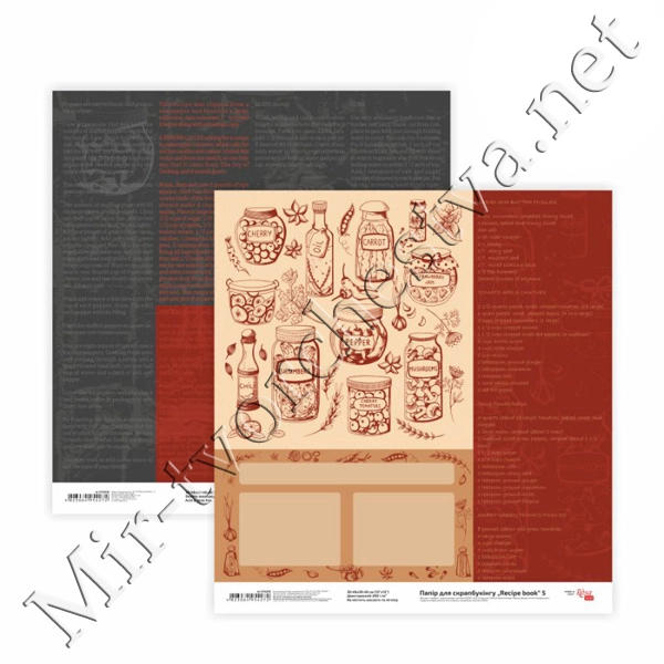 Бумага для скрапбукинга„Recipe book“ 5, двусторонняя, 30,48х30,48см, 200г/м2, ROSA TALENT