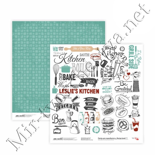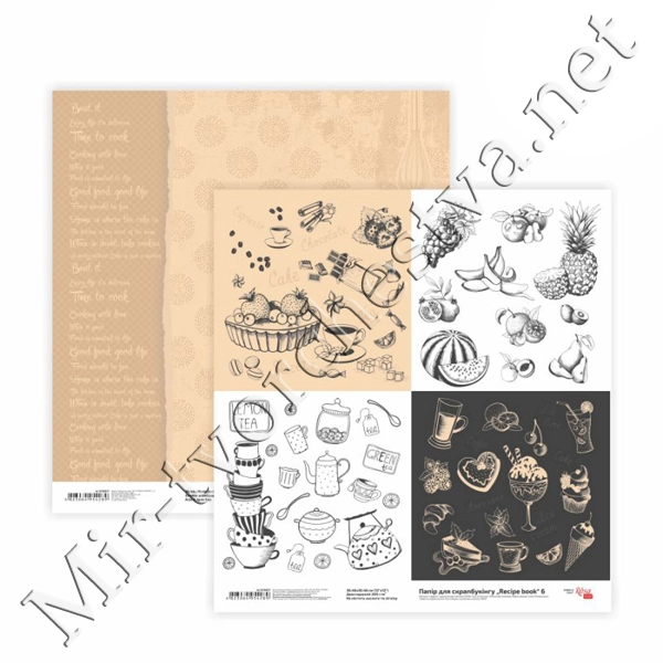Бумага для скрапбукинга„Recipe book“ 7, двусторонняя, 30,48х30,48см, 200г/м2, ROSA TALENT