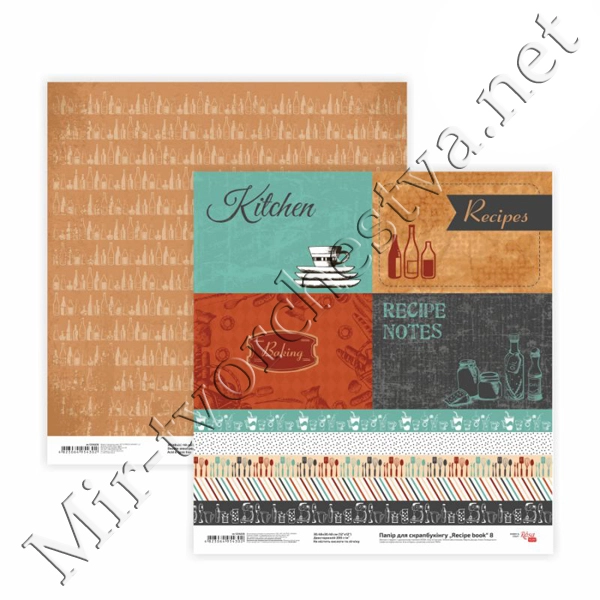 Бумага для скрапбукинга„Recipe book“ 8, двусторонняя, 30,48х30,48см, 200г/м2, ROSA TALENT