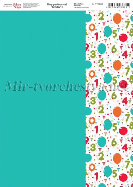 Бумага дизайнерская "Birthday" 3, 21х29,7см, 250г/м2, ROSA START
