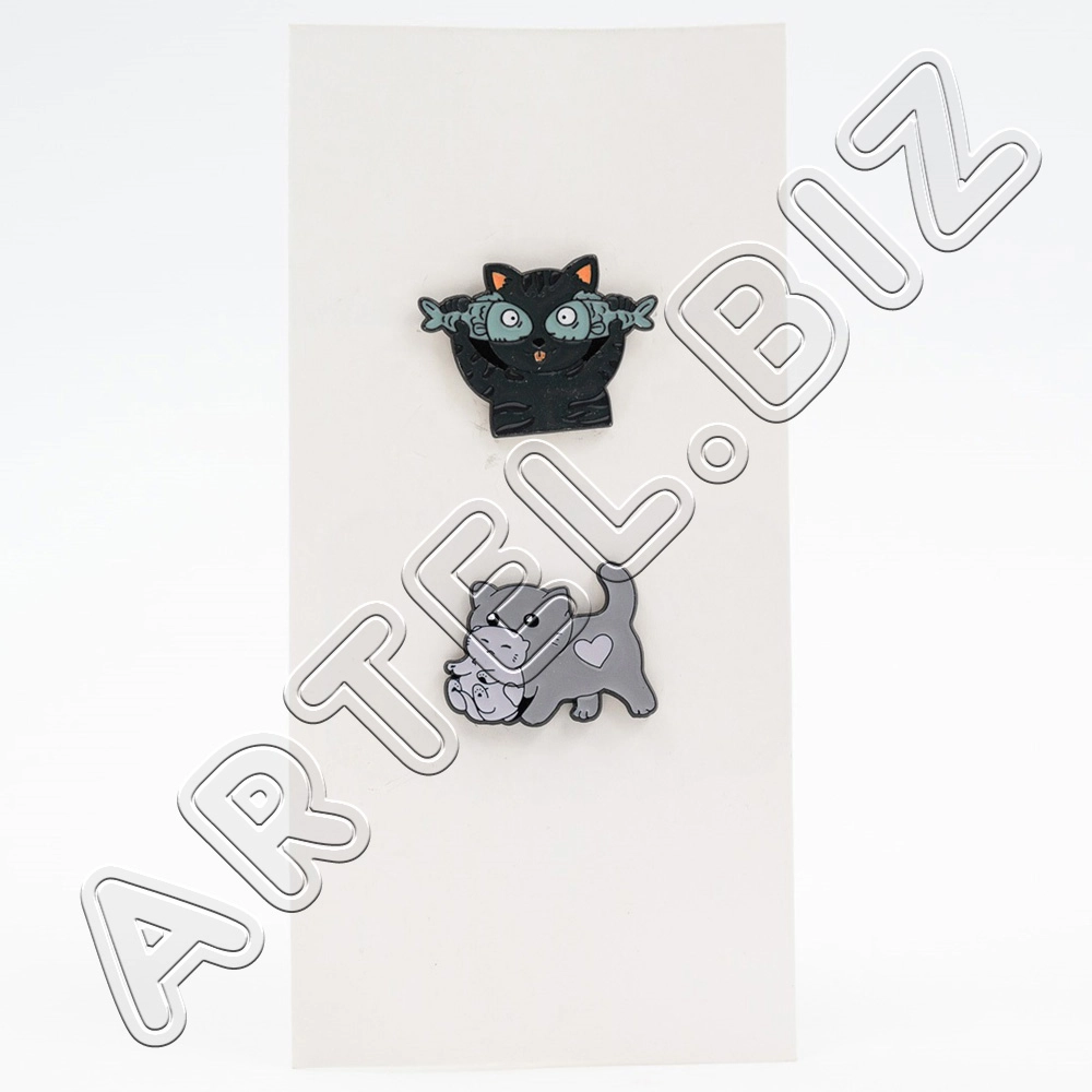 Значки набор 2шт КОТИКИ металлич. арт.12569, Maylott