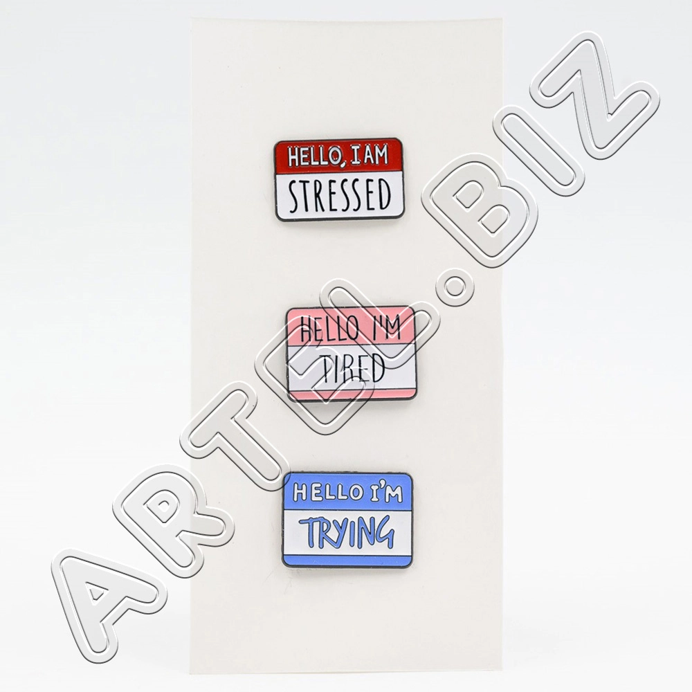 Значки набор 3шт HELLO,I am STRESSED! металлич. арт.12568, Maylott