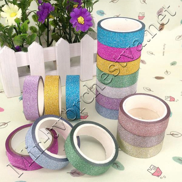 Скотч декоративный, 15ммx3м, ГЛИТТЕР, микс