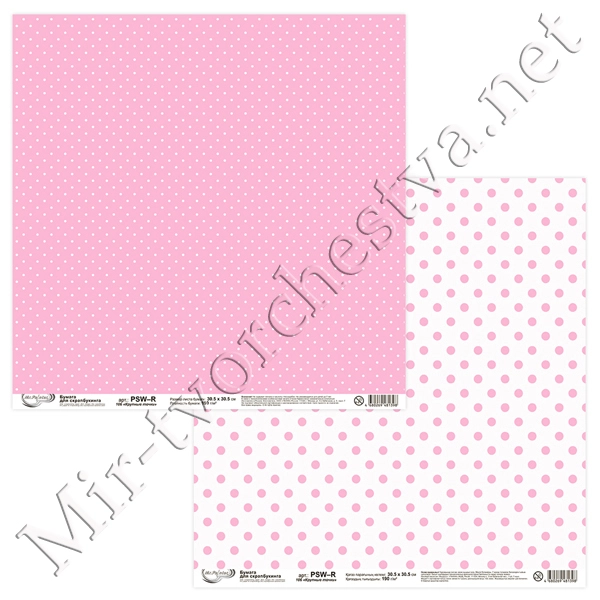 Бумага для скрапбукинга "Горошек, Клетка" 406, 190 г/кв.м 30.5x30.5 см, Mr. Painter