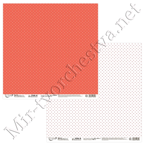 Бумага для скрапбукинга "Горошек, Клетка" 404, 190 г/кв.м 30.5x30.5 см, Mr. Painter
