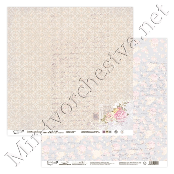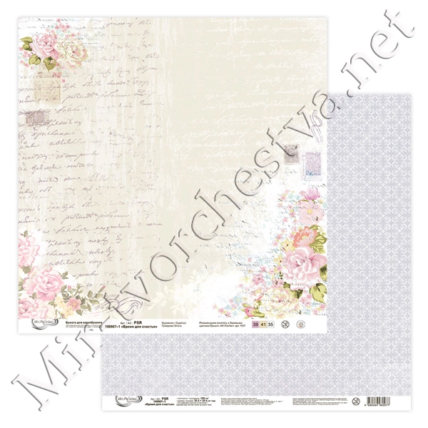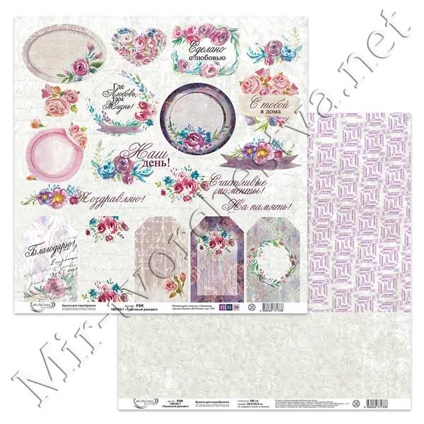 Бумага для скрапбукинга "Любви и счастья" 2, 190 г/кв.м 30.5x30.5 см, Mr. Painter