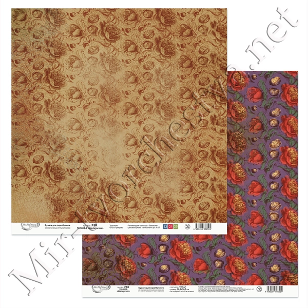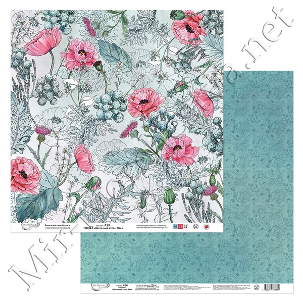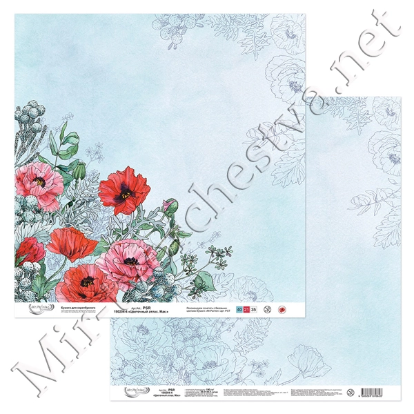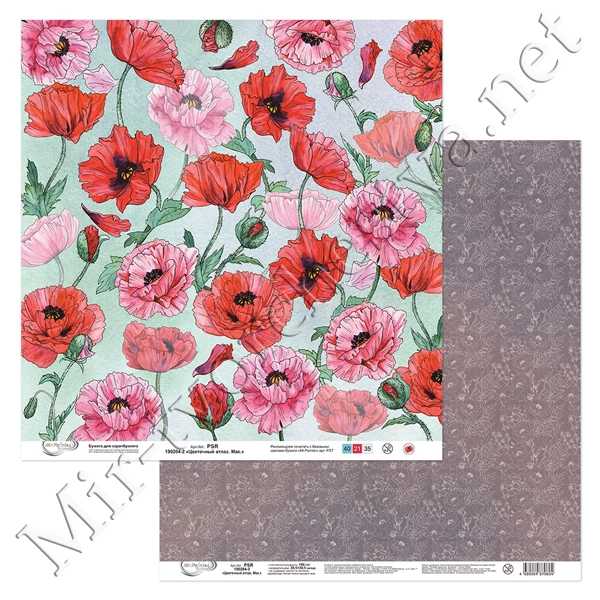 Бумага для скрапбукинга "Цветочный атлас. Мак." 2, 190 г/кв.м 30.5x30.5 см, Mr. Painter