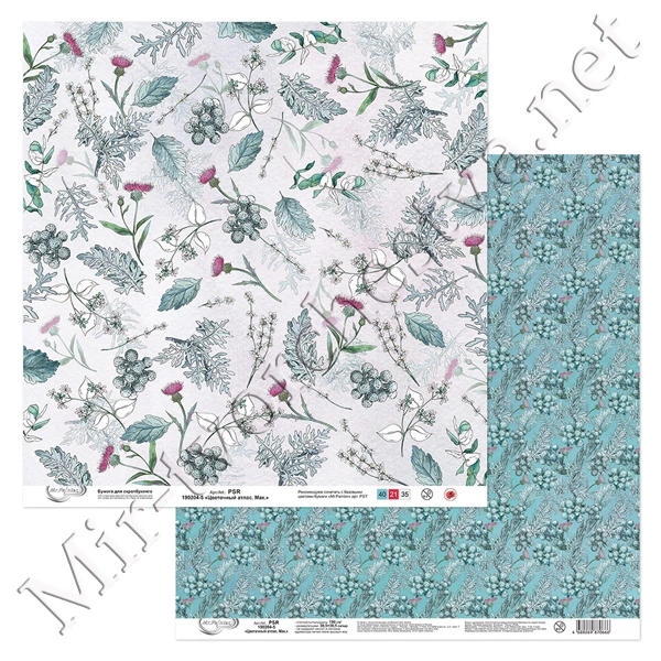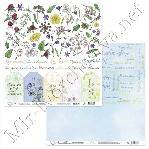 Бумага для скрапбукинга "Цветочный атлас. Полевые цветы." 7, 190 г/кв.м 30.5x30.5 см, Mr. Painter