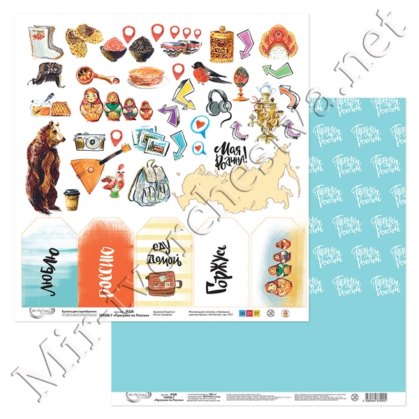 Бумага для скрапбукинга "Прогулки по России" 7, 190 г/кв.м 30.5x30.5 см, Mr. Painter