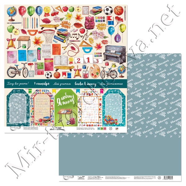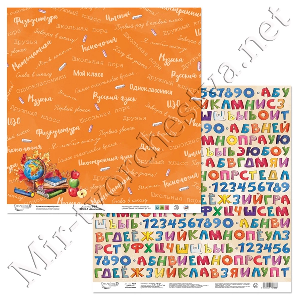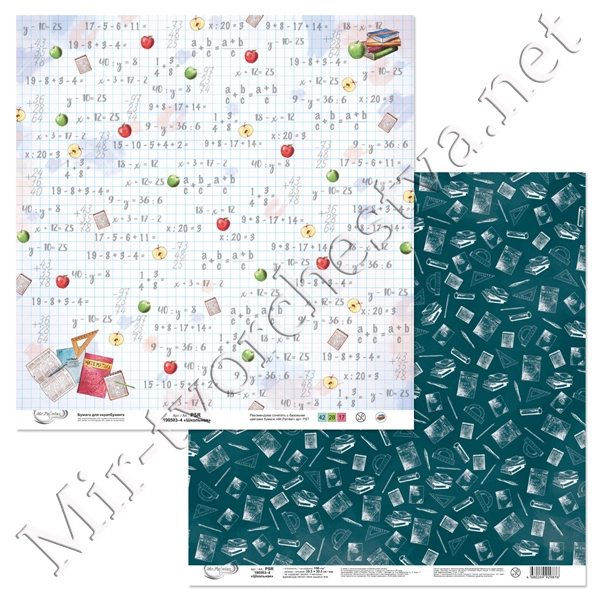 Бумага для скрапбукинга "Школьная" 4, 190 г/кв.м 30.5x30.5 см, Mr. Painter