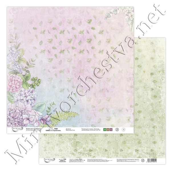 Бумага для скрапбукинга "Гортензия" 3, 190 г/кв.м 30.5x30.5 см, Mr. Painter