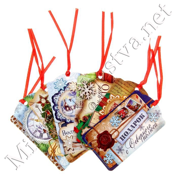 Набор тегов для скрапбукинга(6шт.)"Новогодний", 5x9см