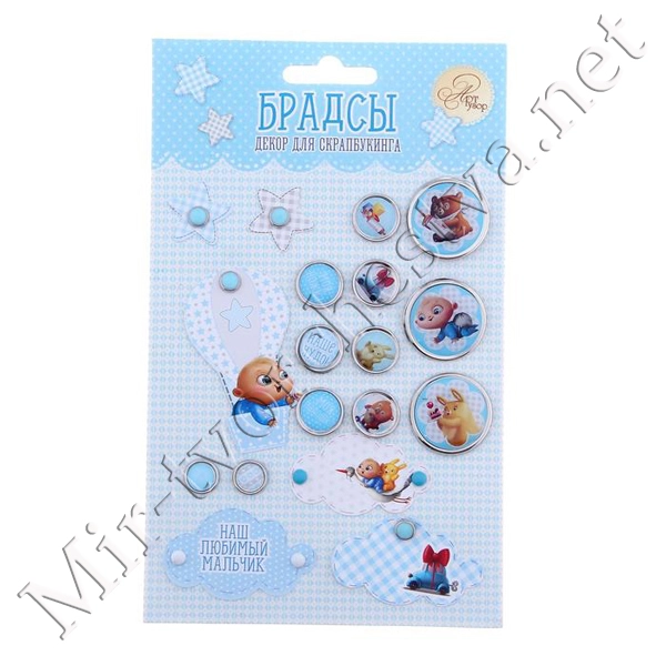 Набор брадсов для скрапбукинга с картонным декором "Наш кроха", 11х14см