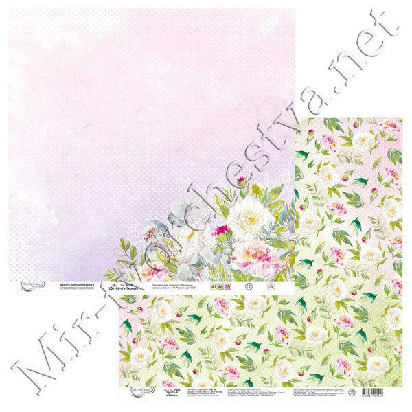 Бумага для скрапбукинга "Пионы" 6, 190 г/кв.м 30.5x30.5 см, Mr. Painter