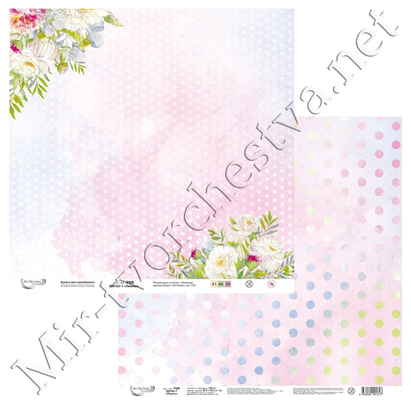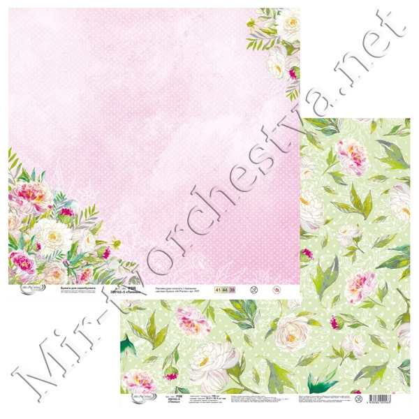 Бумага для скрапбукинга "Пионы" 1, 190 г/кв.м 30.5x30.5 см, Mr. Painter