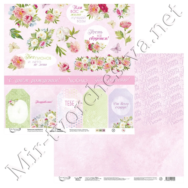 Бумага для скрапбукинга "Пионы" 4, 190 г/кв.м 30.5x30.5 см, Mr. Painter