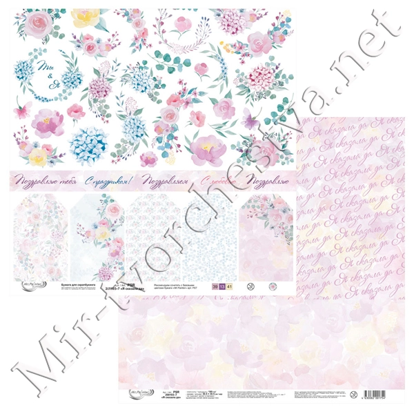 Бумага для скрапбукинга "Я сказала да" 4, 190 г/кв.м 30.5x30.5 см, Mr. Painter
