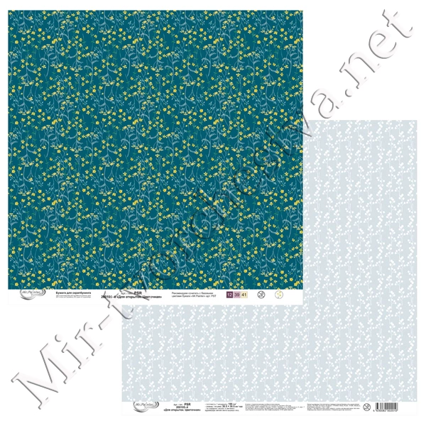 Бумага для скрапбукинга "Для открыток. Цветочная" 4, 190 г/кв.м 30.5x30.5 см, Mr. Painter